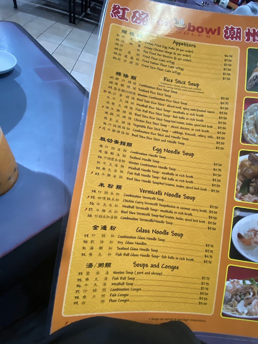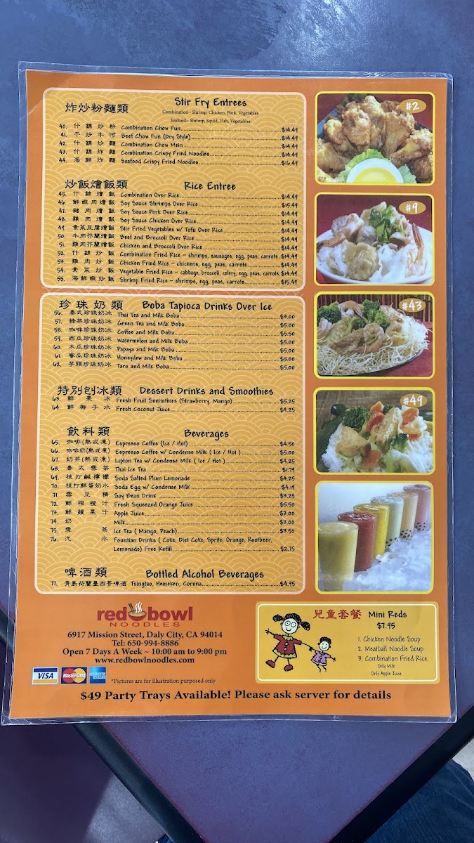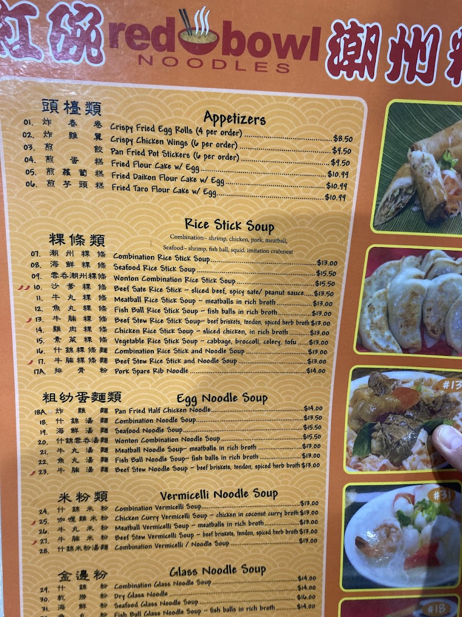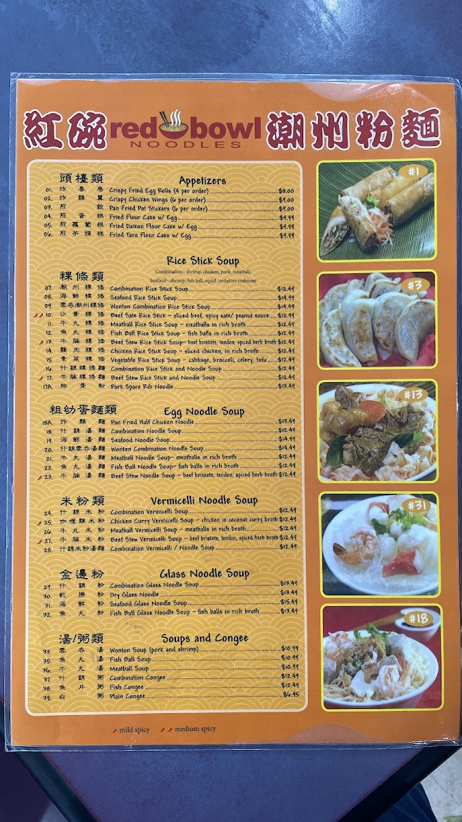 Red Bowl Noodles Menu